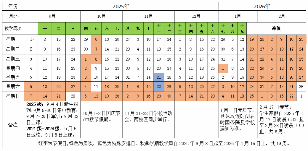 伟德bv1946官网2025-2026学年度第一学期校历(更新)