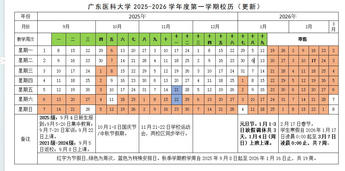 伟德bv1946官网2025-2026学年度第一学期校历(更新)