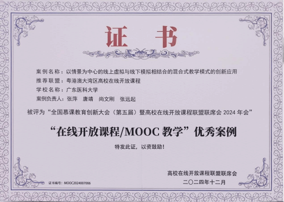 近日,全国高校在线开放课程联盟第五届全国慕课教育创新大会暨高校在线开放课程联盟联席会2024年会在青岛召开,伟德bv1946官网推荐申报的“以情景为中心的线上虚拟与线下模拟相结合的混合式教学模式的创新应用”案例获该联盟2024年度“在线开放课程/MOOC教学”优秀案例。