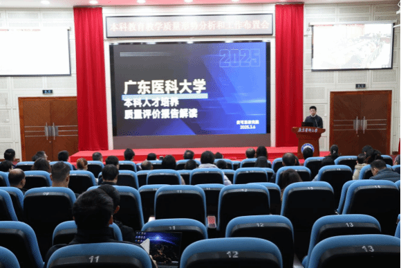 教务部主任周艳芳在发言中明确,2025年本科教育教学工作要紧密围绕《关于进一步全面深化改革 加快高水平大学建设高质量发展的实施方案》(党〔2025〕3 号)展开。以本科教学审核评估整改及专业认证为重点,大力实施“五育铸魂”“专业优化”“数智赋能”“实践提质”“质量保障”五大行动,推动人才培养改革创新,以“数智医学 +”融合创新赋能人才培养,深化“三院融通”协同育人模式。